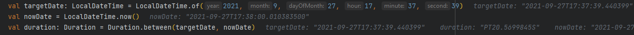 val nowDate = LocalDateTime.now() // 2021, 9, 27, 17, 38, 00