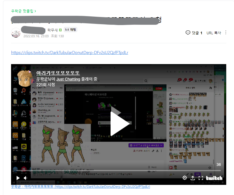 기존에는 트위치 클립 URL 을 게시글에 올려두면, 직접 들어가서 플레이어를 재생해야 하는데요, 아래 링크로 접속하여 익스텐션을 설치할 경우