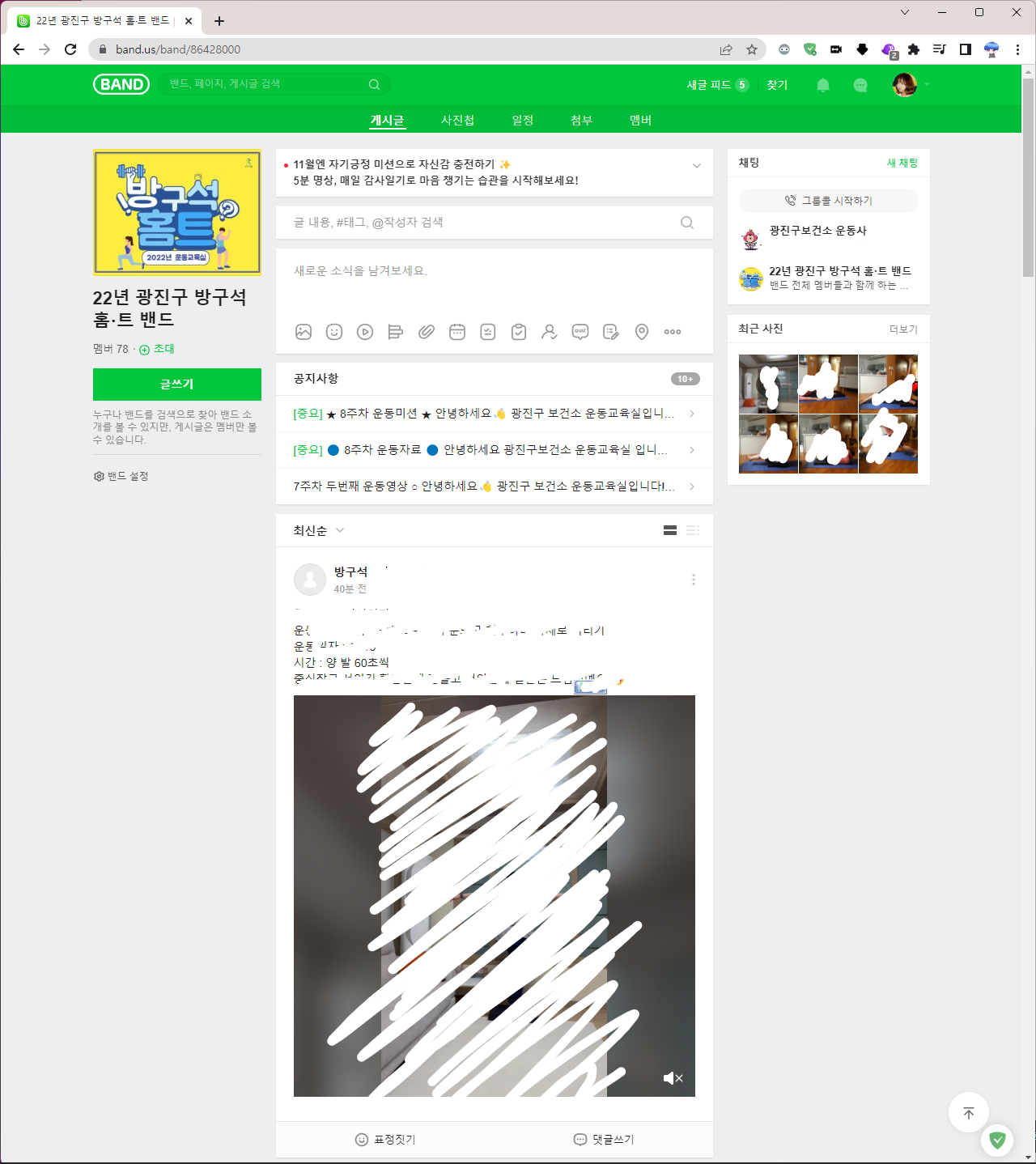 시작하면 네이버 밴드에 가입하라고 합니다.(물론 이 사진은 훨씬 이후의 사진입니다)