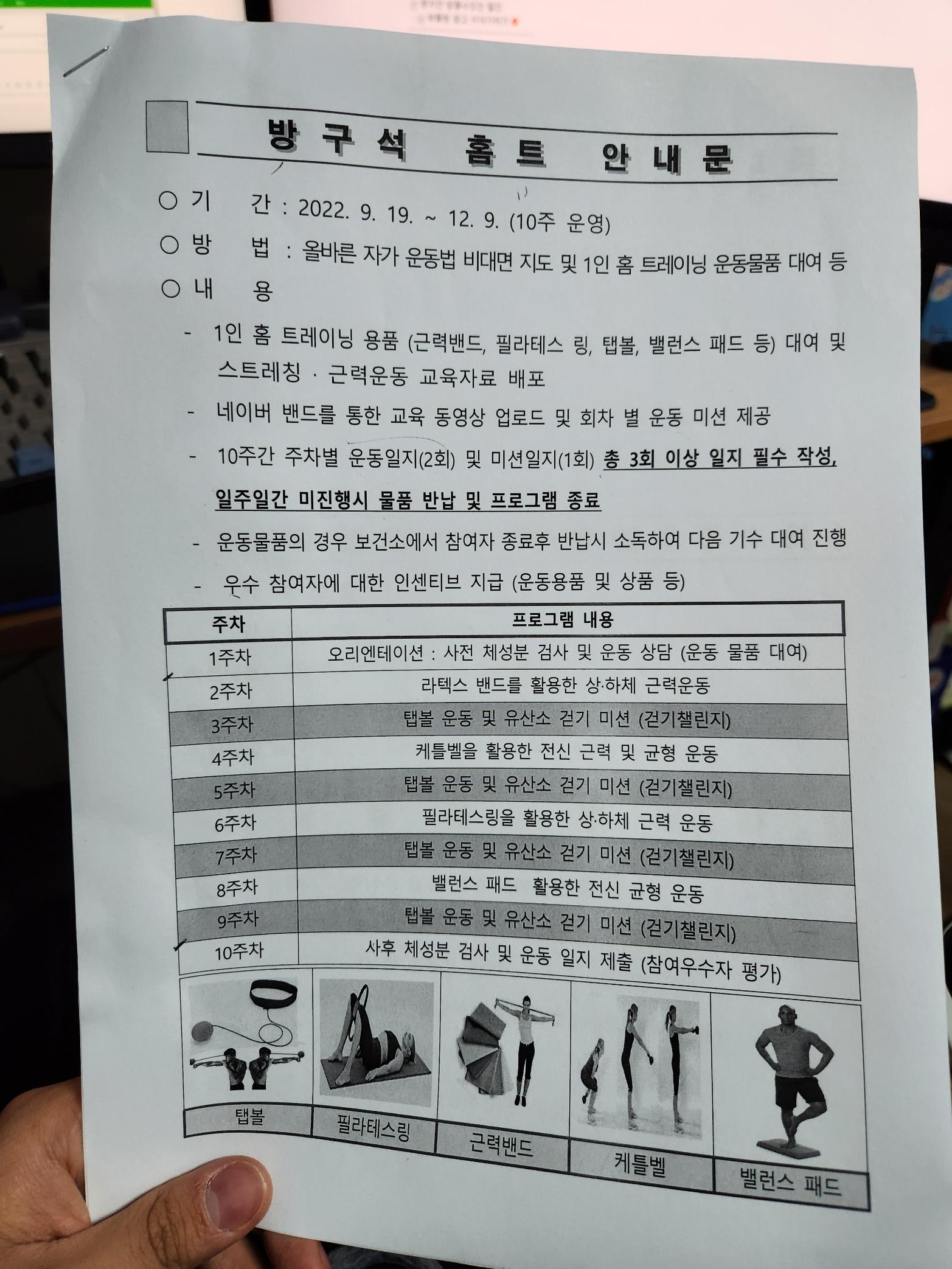 보시다 시피 매주마다 미션과 자료, 운동영상 등을 운동사님이 올려주세요,