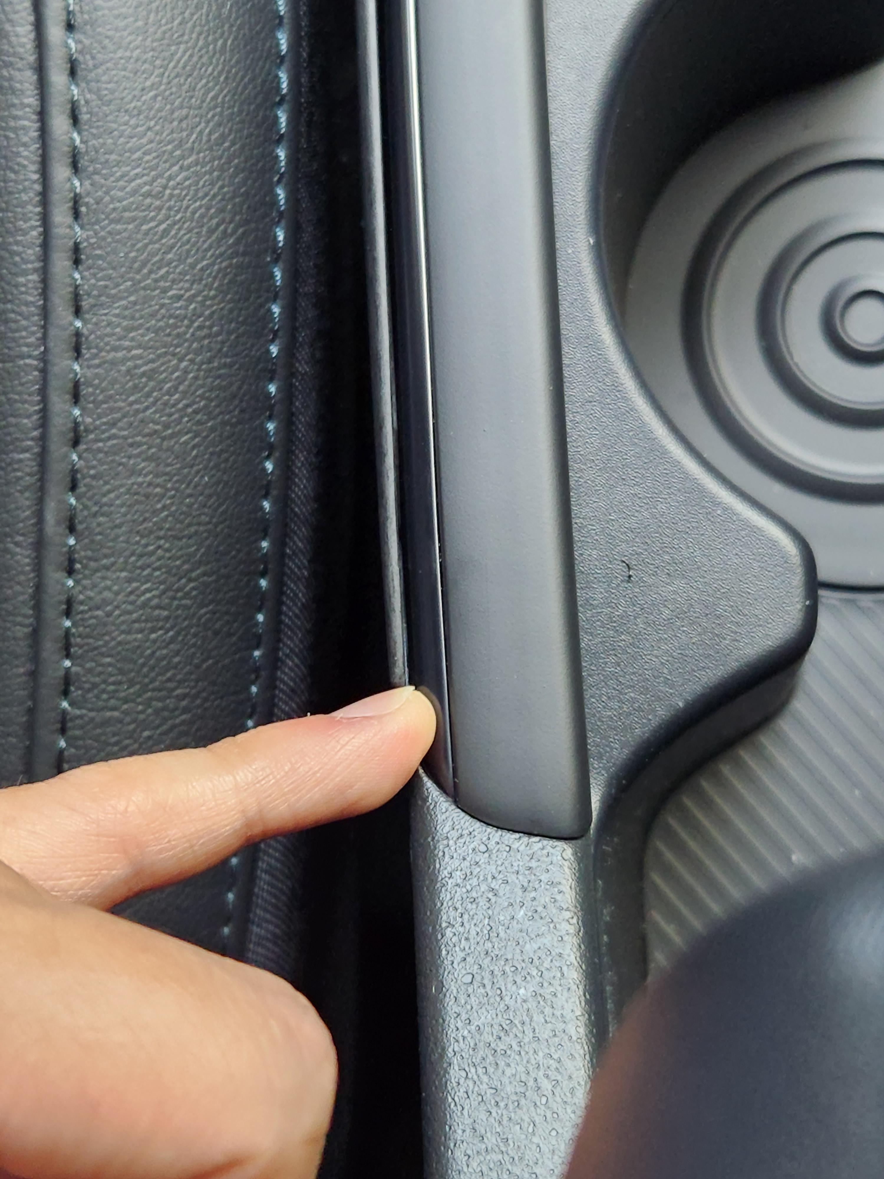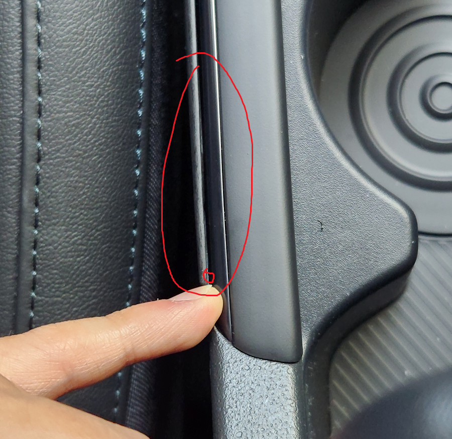 1. 앞좌석 포켓쪽 몰딩 끝부분은 양면 테이프가 없어서 몰딩이 떠있습니다.
