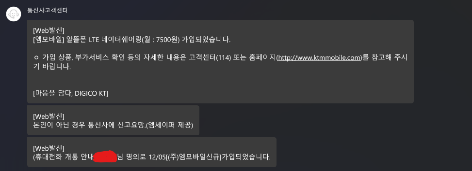 당시 감기몸살로 앓아 누워있느라 평일에는 개통을 못했고 주말에 사이트에서 개통 신청을 했습니다.