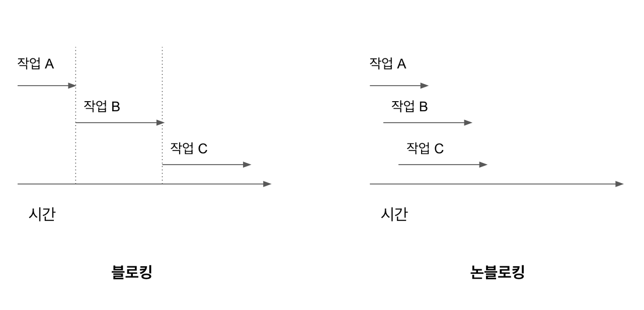 - Blocking: 직접 제어할 수 없는 대상의 작업이 끝날 때까지 기다려야 하는 경우