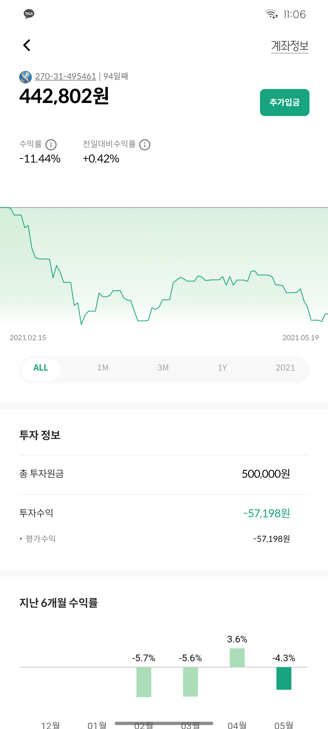 점차 내려가더니 수익률을 -10% 를 넘겼습니다.