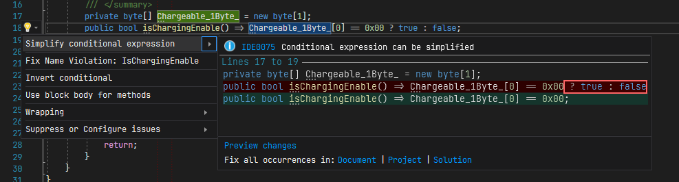 public bool isChargingEnable() => Chargeable_1Byte_[0] == 0x00 ? true : false;