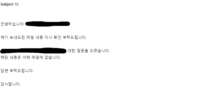 메일을 주고받을때마다 상대 개발자가 작성한 메일은 매우 성의가 없게 느껴졌다.