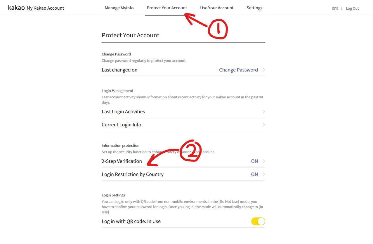 계정 보호로 들어가준 뒤, 2단계 인증을 눌러준다.