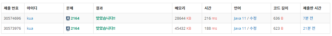 아래가 큐를 이용한 풀이이고, 위가 덱을 이용한 풀이이다.